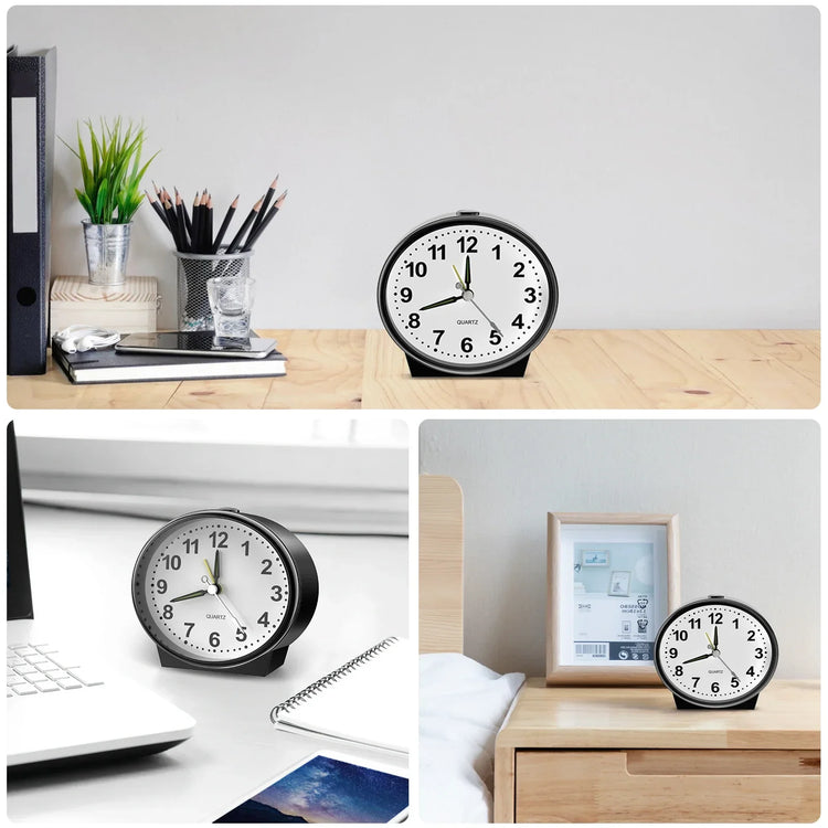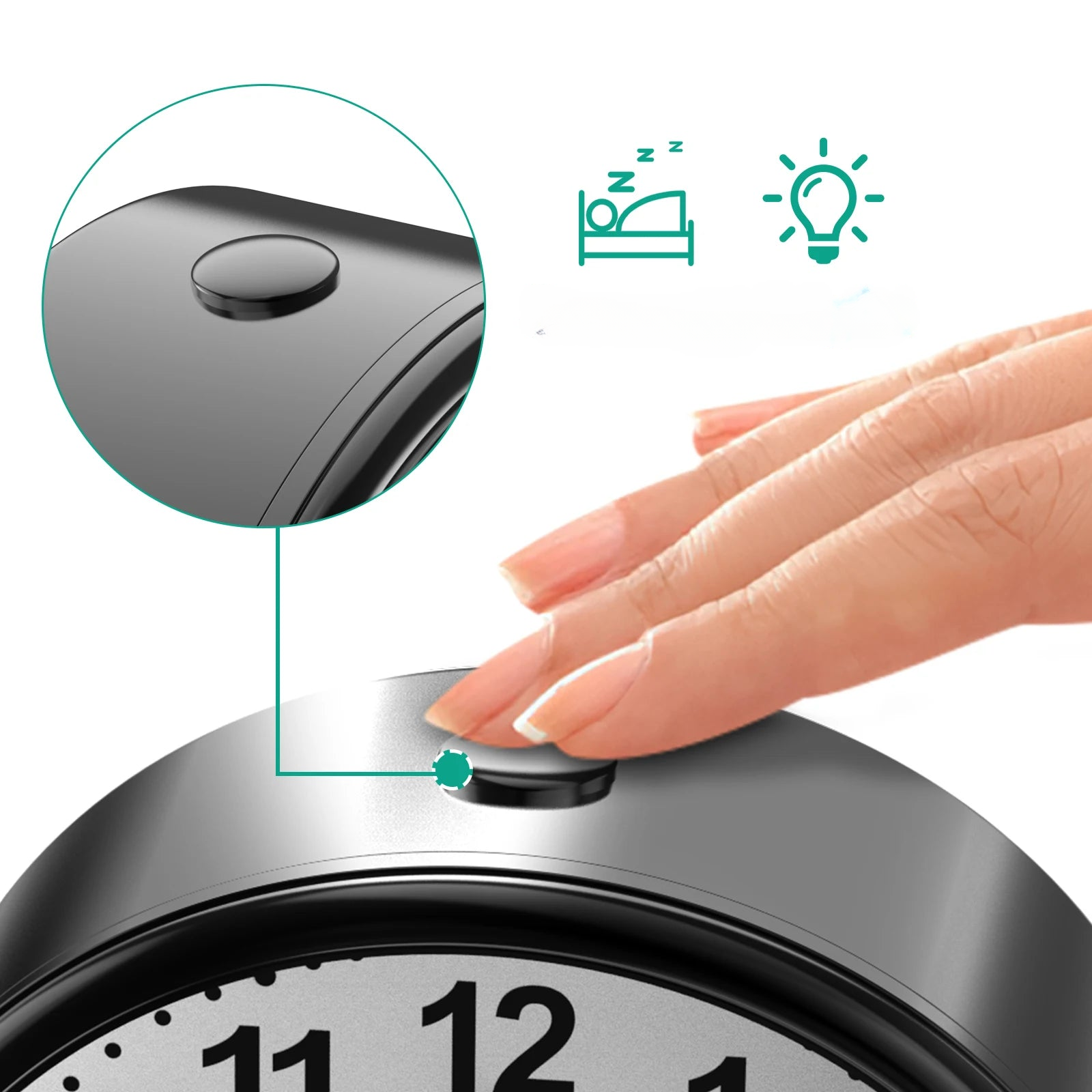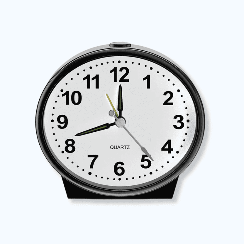 Parfois, la simplicité est la meilleure option. Le Petit réveil à pile analogique propose une lecture fluide avec de grands chiffres contrastés et des aiguilles visibles, y compris la trotteuse pour les plus précis. Il fonctionne avec une pile AA, sans câble ni bruit parasite. Pensé pour un usage quotidien, il dispose d’un bouton lumineux pour consulter l’heure la nuit sans déranger votre sommeil. La fonction alarme est claire et directe : efficace sans être agressive.