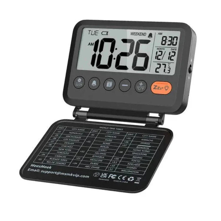 Grâce à sa fonction alarme avec snooze, vous pouvez retarder le lever de quelques minutes en toute simplicité. Son format pliable se glisse facilement dans une valise, un sac à dos ou même une poche, sans risque d’encombrement ni de casse.