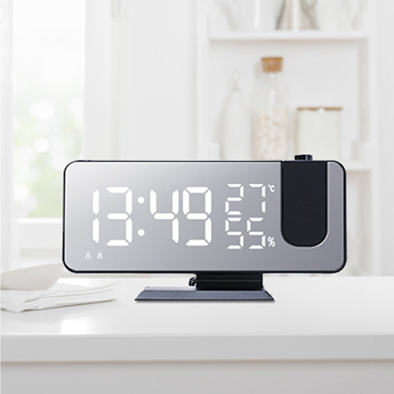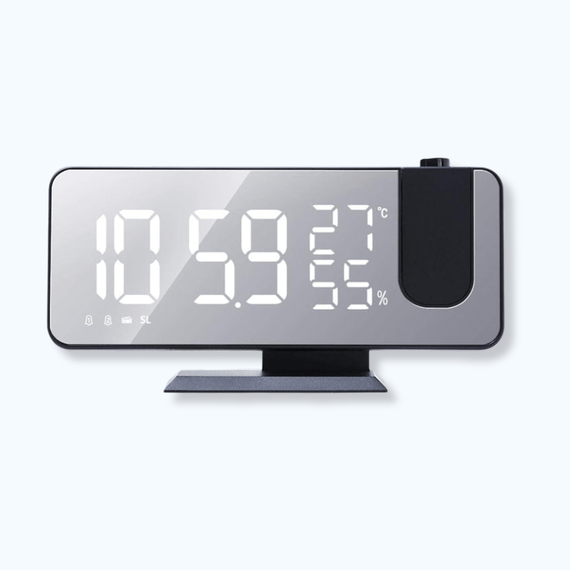 Ce Radio réveil projecteur et température dispose d’une double alarme pratique, idéale pour les couples ou pour programmer un réveil différé selon votre emploi du temps. Son design épuré noir miroir s’intègre harmonieusement à toutes les décorations, apportant une note high-tech et élégante à votre intérieur.