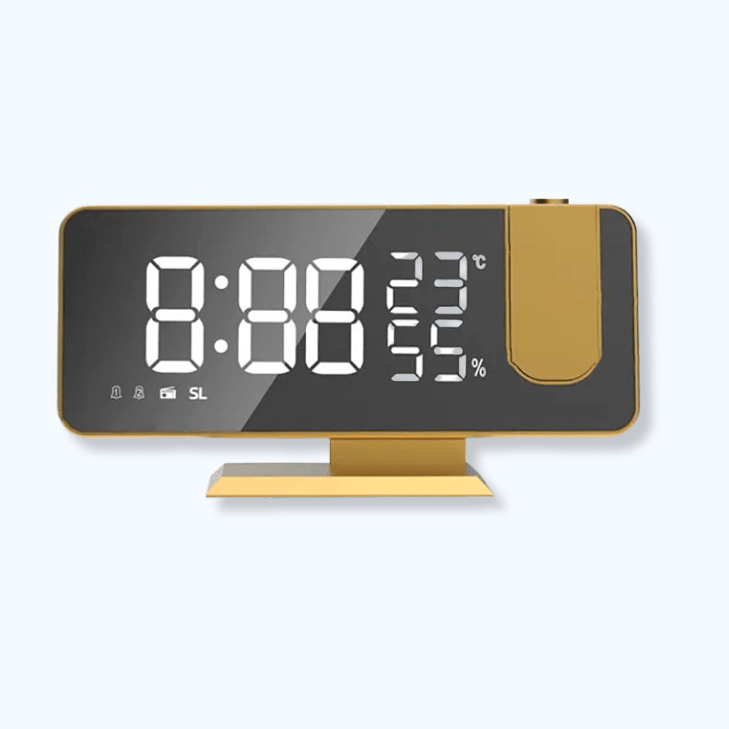 Avec son grand écran à LED haute luminosité et ses informations complètes (heure, température, humidité), le Radio réveil projecteur original devient un véritable allié au quotidien. Sa finition dorée élégante apporte une touche contemporaine et raffinée à votre intérieur, que ce soit sur une table de chevet ou un bureau.
