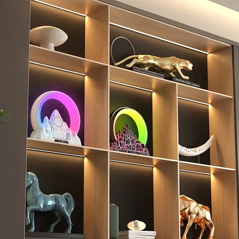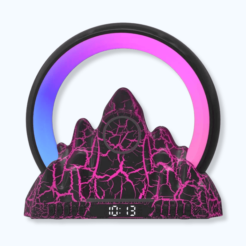 Le réveil luminothérapie enfant intègre un chargeur sans fil pour smartphone et une enceinte Bluetooth, parfaits pour écouter des berceuses ou des musiques relaxantes avant le coucher. Son design montagne fissurée illumine la chambre avec originalité, ajoutant une touche décorative à la fois futuriste et féérique. Une idée cadeau utile et ludique qui émerveillera chaque soir et facilitera les matins.