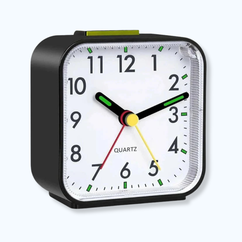 Le réveil à pile silencieux est conçu pour ceux qui ont besoin d’un environnement calme. Son mouvement à quartz ultra-silencieux élimine les bruits de tic-tac, pour un sommeil sans interruption et un réveil sans stress. Sa fonction alarme reste puissante pour vous tirer du sommeil à l’heure souhaitée. Grâce à son format compact et léger, il se glisse partout : table de chevet, bureau ou sac de voyage.