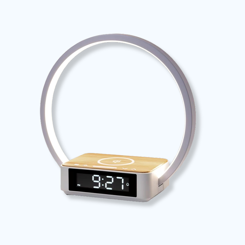 Chaque détail du réveil chargeur induction design a été pensé pour apporter une touche d’élégance et de confort. Sa lampe LED en forme d’anneau diffuse une lumière douce et chaleureuse idéale pour lire, méditer ou créer une ambiance apaisante. Le socle en imitation bois clair apporte un style naturel et minimaliste, parfait pour sublimer votre table de nuit ou bureau.