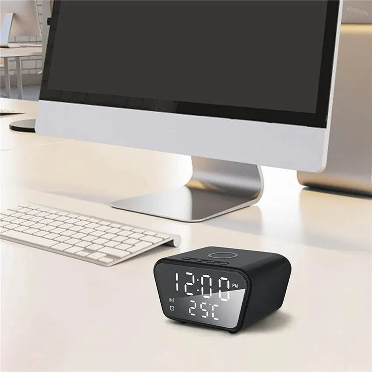 Le réveil connecté chargeur séduit par son écran miroir LED blanc sur fond noir, apportant une touche moderne et minimaliste à ta chambre. Son affichage digital affiche l’heure et la température ambiante avec une lisibilité optimale, de jour comme de nuit.