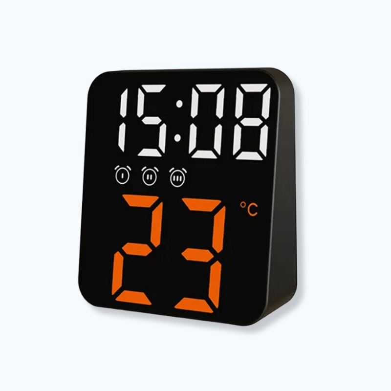 Ses grands chiffres LED blancs et orange assurent une lecture facile de l’heure et de la température même la nuit, sans éblouir. Idéal pour les personnes recherchant un réveil pratique et moderne, il vous aide à vérifier l’heure d’un simple regard, même en pleine obscurité.