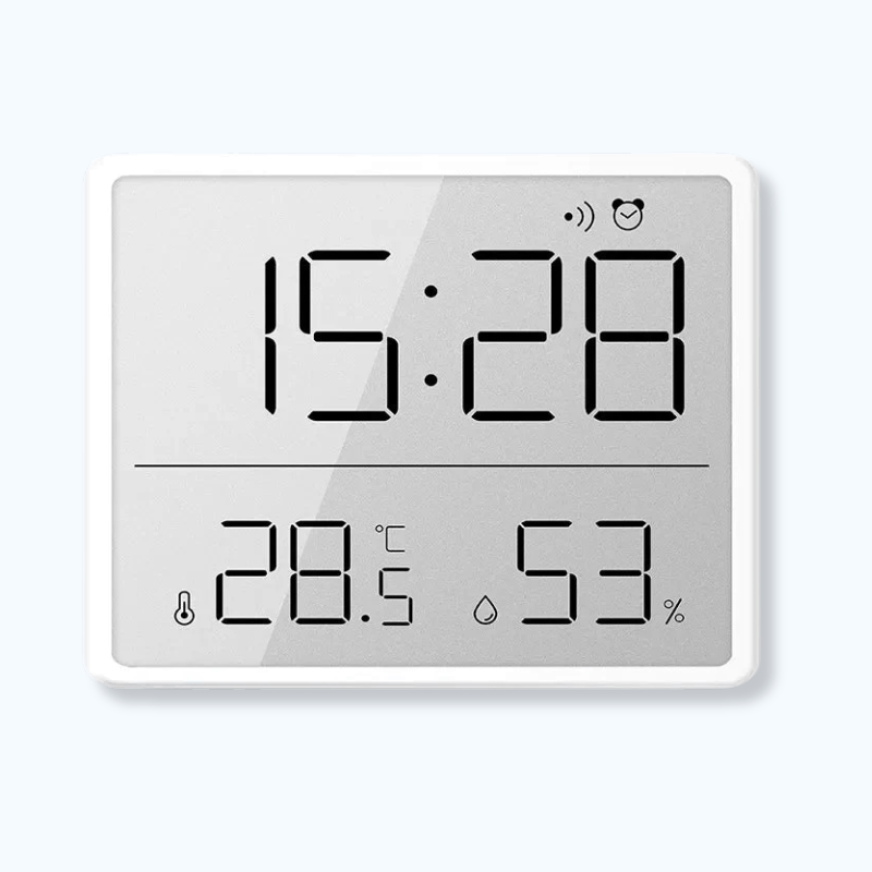 Doté d’un affichage numérique grand format, il indique l’heure, la température et l’humidité, idéal pour ajuster l’ambiance de votre pièce et profiter d’un réveil confortable et précis chaque matin.