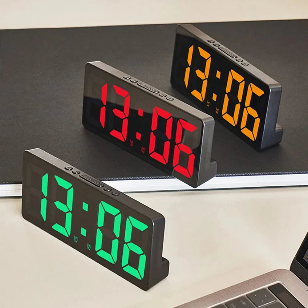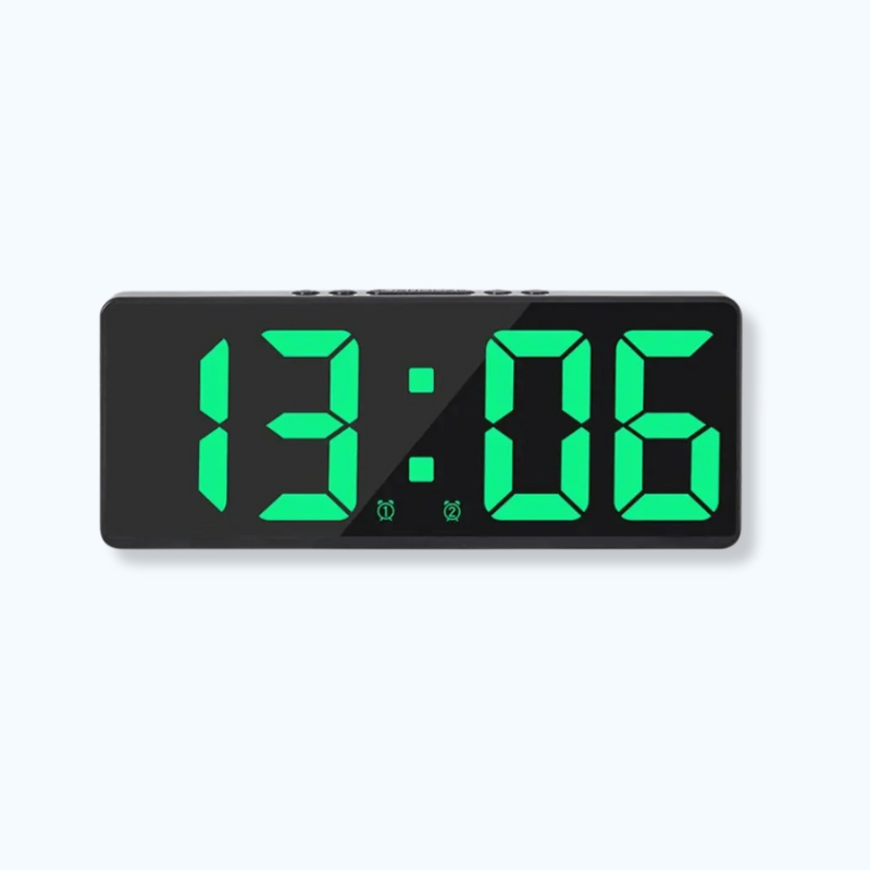 Ce réveil digital LED affiche l’heure en grands chiffres lumineux pour une lecture optimale, même dans l’obscurité. Sa luminosité réglable s’adapte à votre confort visuel, limitant la fatigue oculaire et préservant la qualité de votre sommeil.