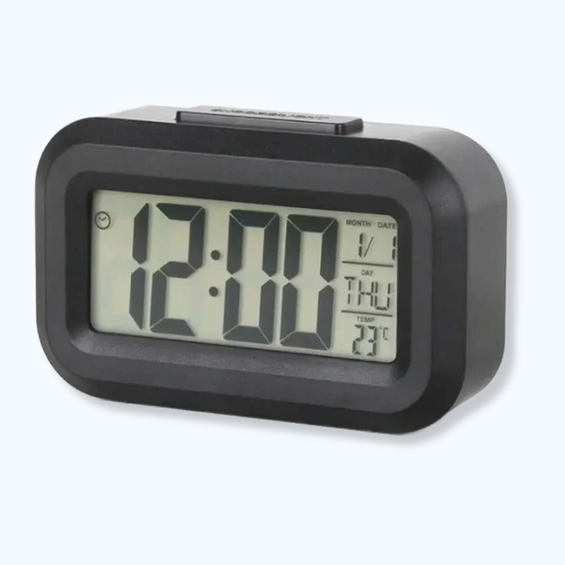 Le réveil digital mini propose un affichage complet et clair : heure, jour, date et température ambiante. Vous disposez ainsi de toutes les informations utiles dès votre réveil, sans effort. Son grand écran LCD assure une lecture facile, même dans une pièce sombre grâce à son rétroéclairage.
