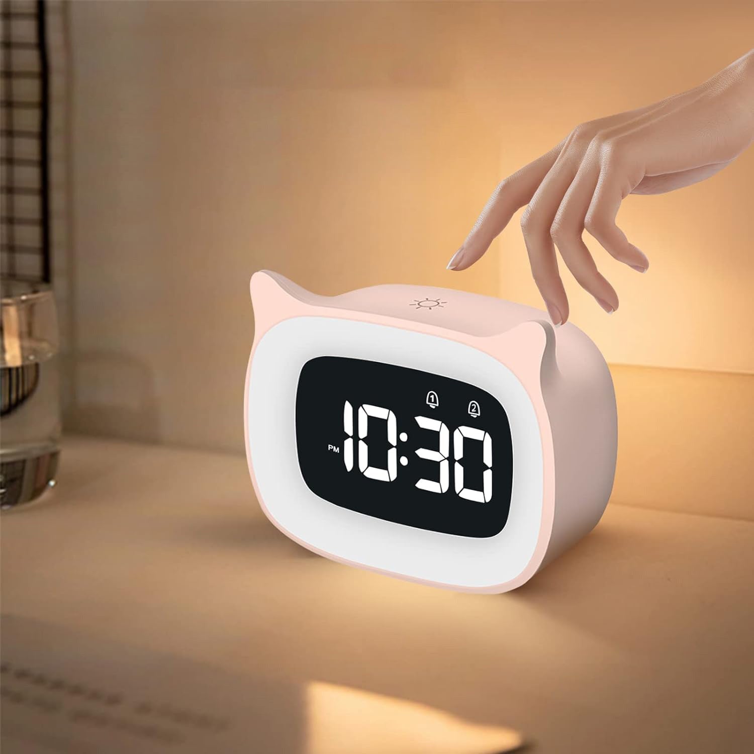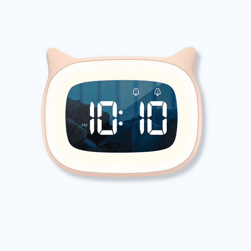 Avec ses petites oreilles discrètes et sa silhouette arrondie, le réveil jour nuit rose apporte une note de douceur à votre table de nuit. Sa couleur rose poudré s’harmonise facilement avec une décoration scandinave, bohème ou enfantine. Son écran LED lumineux garantit une lecture facile de l’heure même la nuit, tout en restant confortable pour les yeux. Ce réveil devient un véritable objet déco qui apporte charme et sérénité à votre intérieur.