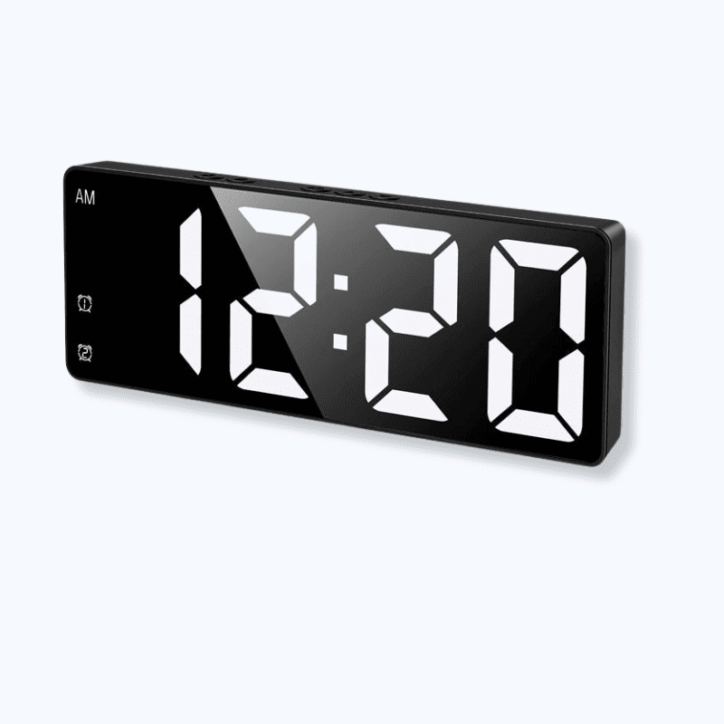 Le réveil lumineux à piles offre une lecture instantanée de l’heure grâce à son écran LED haute visibilité. Même dans l’obscurité, les chiffres restent parfaitement nets sans éblouir. Ce format est idéal pour ceux qui veulent consulter l’heure d’un simple coup d’œil, sans bouger. Avec son design minimaliste et sans câble apparent, il s’intègre dans tous les intérieurs : chambre, bureau, ou coin lecture. Sa surface miroir ajoute une touche élégante tout en conservant une fonctionnalité essentielle au quotidien.