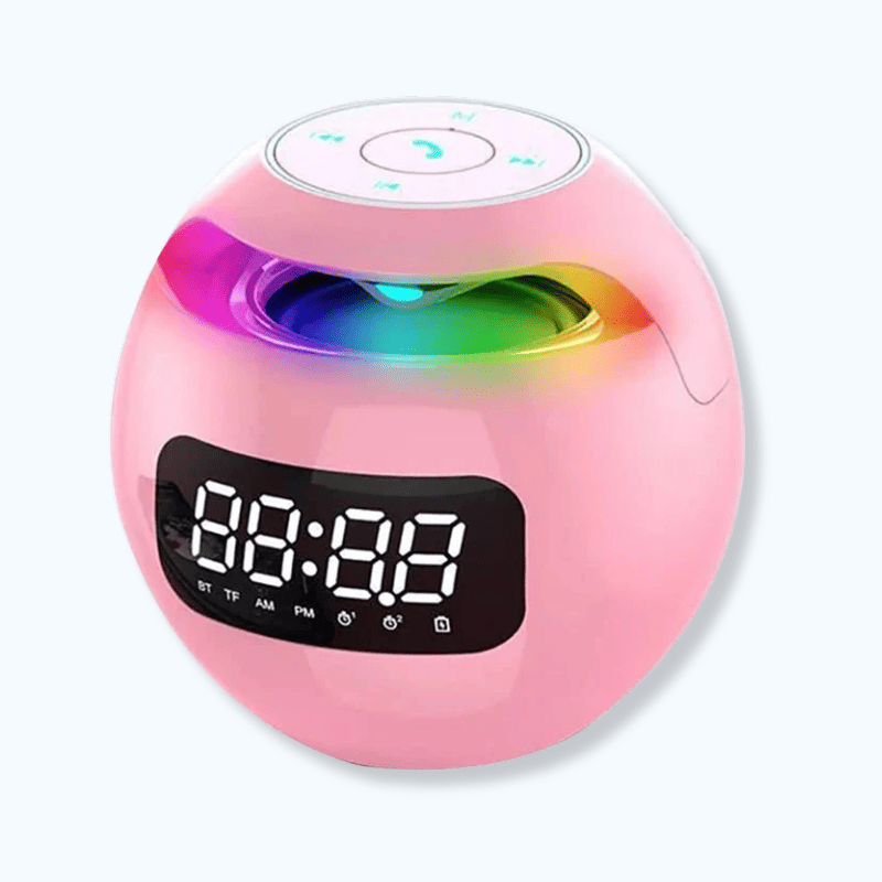 Son design sphérique rose apporte une touche de modernité à votre table de nuit. Compact et esthétique, il s’intègre facilement à tout intérieur. Le Réveil luminothérapie musicale affiche l’heure clairement grâce à son écran LED. Equipé d’un haut-parleur Bluetooth, il vous permet de diffuser vos musiques ou sons d’ambiance directement depuis votre téléphone. Le Réveil luminothérapie musicale combine ainsi praticité, technologie et élégance au quotidien.