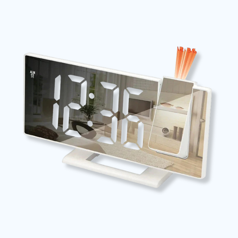 Le réveil projecteur blanc séduit par son écran LED miroir qui offre une lecture nette de l’heure, même à distance. Son design minimaliste s’intègre harmonieusement dans un intérieur moderne, apportant une touche de sobriété et de style. Sa fonction miroir intégré vous permet également un usage pratique au quotidien. Son atout majeur reste sa projection murale orientable, idéale pour consulter l’heure sans effort en pleine nuit. Vous bénéficiez ainsi d’un affichage confortable et réglable selon votre position dans la pièce, pour un réveil plus serein et ergonomique.