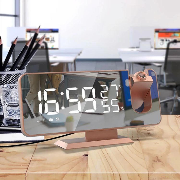 Ce réveil projecteur rose gold séduit par son design miroir moderne et sa finition métallique raffinée. Son affichage LED blanc est parfaitement lisible de jour comme de nuit, sans éblouir. Il indique l’heure, la température ambiante et le taux d’humidité pour un véritable confort au quotidien.