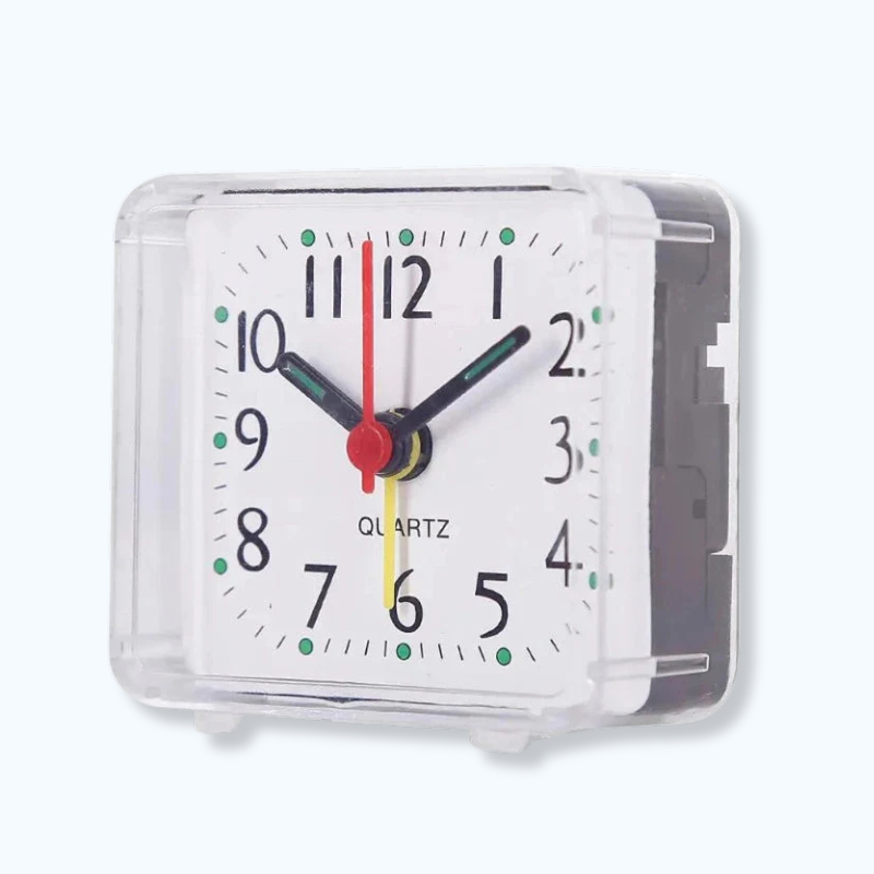 Le réveil simple d’utilisation coloré séduit par son design carré compact et ses couleurs variées : rose, bleu, vert et transparent. Léger et robuste, il se transporte facilement et trouve sa place sur un bureau, une table de chevet ou une étagère. Doté de grands chiffres lisibles et d’aiguilles contrastées, il garantit une lecture rapide de l’heure. Ce réveil simple est parfait pour celles et ceux qui recherchent simplicité et efficacité sans options complexes.